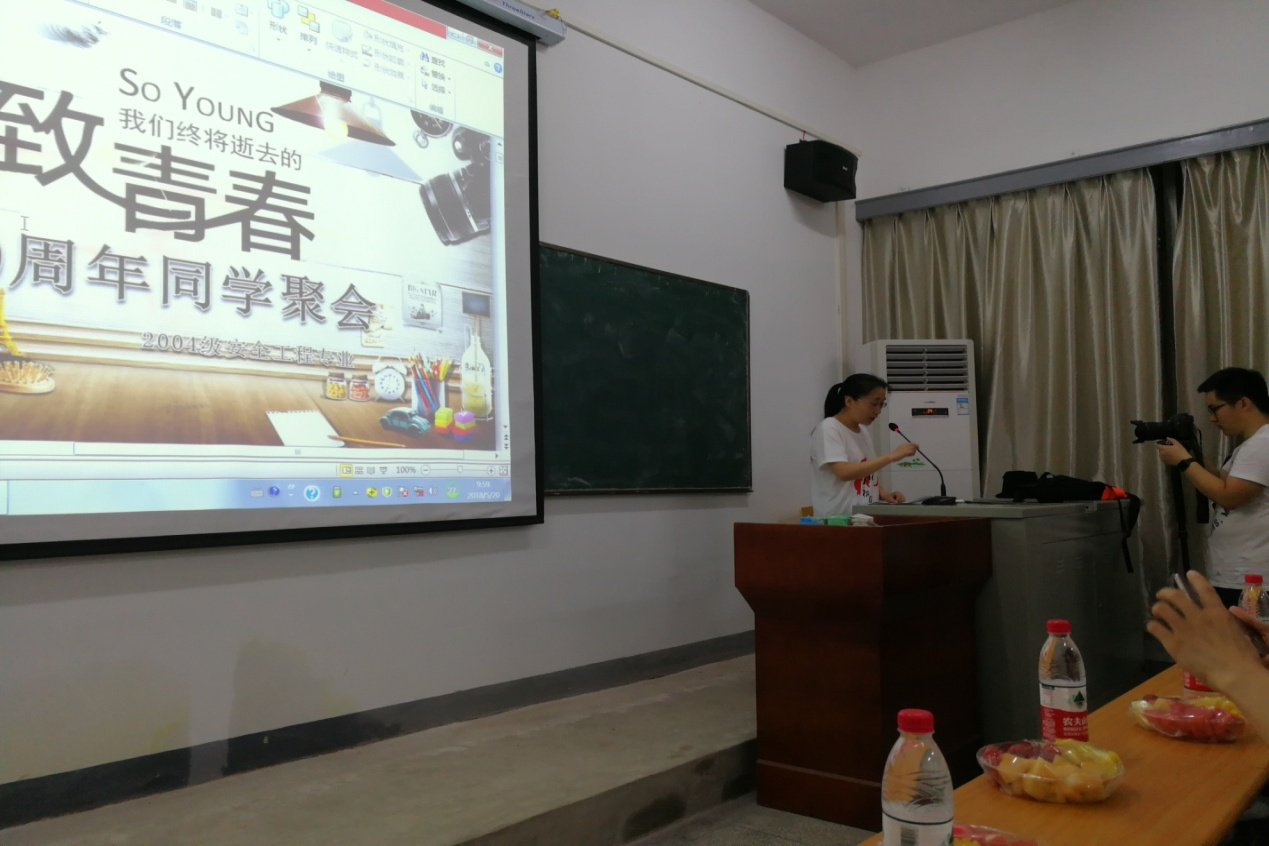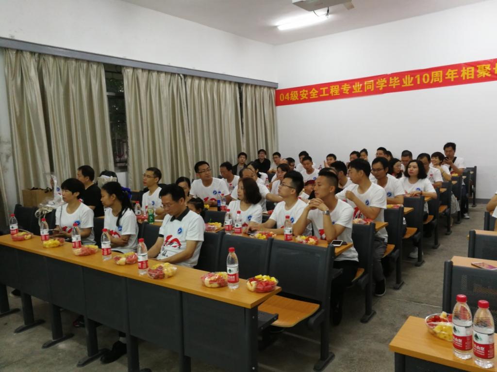 党委书记孔海霞、安全工程教研室全体教师以及14、15、16级部分同学与会。班会开始时,投影屏幕上放映了十年前他们学习和生活的珍贵照片。