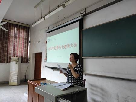 近年来严抓考风考纪的真实案例向同学们强调要严格考风考纪、自觉遵守考试纪律,坚持诚信考试,树立良好的学风。李佳从通过校园内防盗、防骗、用水用电、防溺水、食品安全、交通安全、网络安全等方面典型案例入手,并结合武昌校区的实际情况,告诫同学们在假期内要提高自我安全防范意识,把安全牢记在心。