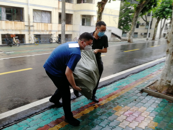 安全工程专业吴燕玲老师和班主任邱丹丹老师冒雨为毕业生搬运行李