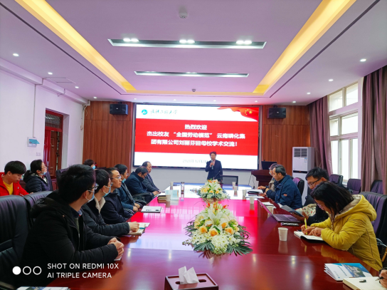 党委书记江本武主持。在交流会上,刘丽芬校友充分表达了再访母校的喜悦之情,并分享了其植根于云磷集团研发生产一线的宝贵经历和技术经验,并就现阶段磷资源开发利用难题,特别是磷尾矿和磷石膏资源化,以及磷化工废酸再利用等方面,与全院师生进行了深入探讨,为我校与云磷集团的长期交流与合作奠定了坚实基础。