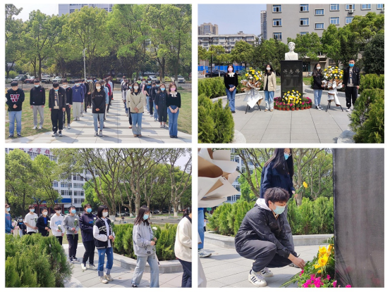 一朵鲜花祭哀思,一份深情奠英雄。学生代表登上纪念碑基座,为英雄敬献花篮,全体师生一一敬献鲜花并瞻仰雕像。