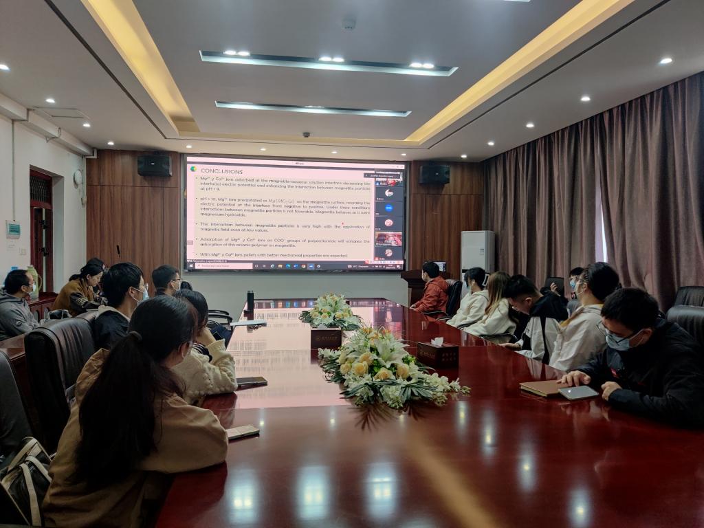 AlejandroLópez-Valdivieso教授从溶液化学、界面化学、DLVO理论出发,阐明了钙镁离子和聚丙烯酰胺在磁铁矿/溶液界面的吸附行为以及其对磁场作用下磁铁矿颗粒之间相互作用和磁铁矿球团机械性能的影响。