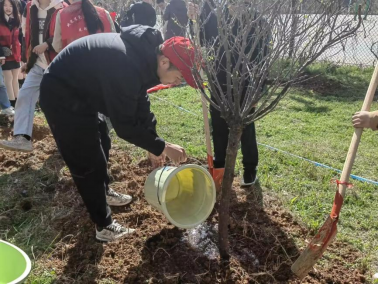 为单位投入到紧张的劳动中,扶苗固根、挥锹填土,提水浇灌……大家相互协作、默契配合,认真细致地完成每一道工序。