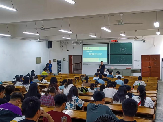 承办,邀请武汉轻工大学心理健康教育中心主任魏鹏程老师主讲。学生代表、心理委员代表等100多名学生参与,心理健康教育中心史梦璐老师主持。