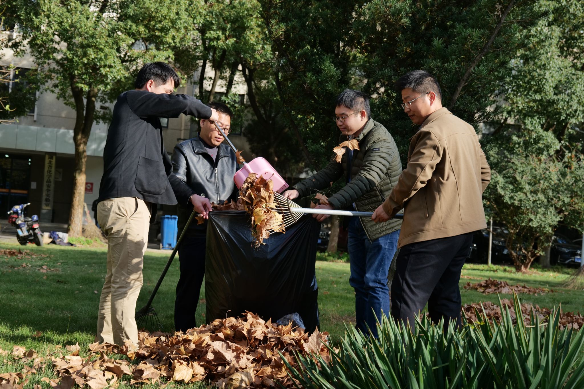 劳动责任区域内进行清扫,手拿草耙子、垃圾袋,对许志伟广场的落叶枯枝、纸屑烟头等垃圾进行清扫装袋。