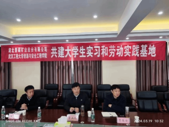 与湖北楚磷矿业有限公司合作,共同打造本科生实习基地,并在楚磷矿业部举行了挂牌仪式。保康县副县长曹正琦、科技局副局长贾荣俊、马桥镇副镇长石君培,以及楚磷矿业有限公司总经理郭道玉、副总经理田晓明、李锦文、刘俊雄,成人抖音