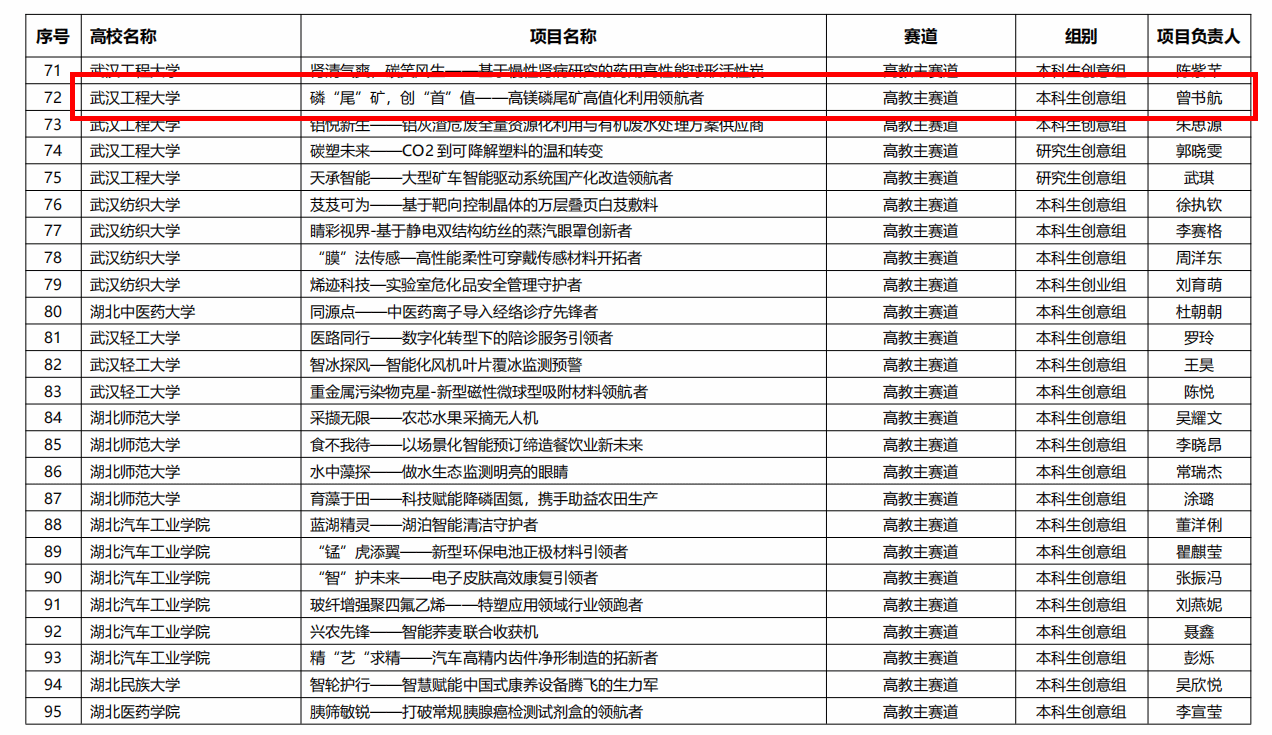 据悉,我校有6个本科生项目获奖,其中磷“尾”矿,创“首”值——高镁磷尾矿高值化利用领航者团队已于2023年11月开始组建武汉领创环保科技有限公司。公司选址在国家级新区、中国科技创新高地湖北省武汉市东湖高新区,注册资本预计为800万人民币。公司的主营业务是以磷尾矿为主的固体废弃物的开发、治理以及资源化产品的生产、销售,并提供技术服务。公司秉持“绿水青山就是金山银山”的核心理念,致力于前沿技术商业化道路,追求产学研一体化,希望通过不断的技术革新,推动磷尾矿资源化技术的研发和推广,进一步促进生态环境的改善,从而带动地区经济绿色可持续发展。