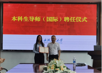 的教授AARAB IMANE 颁发了本科生(国际)导师聘书。会上同学们送上了亲自手写的明信片和鲜花,向AARAB IMANE 表达节日的祝福与敬意。来到中国之前,AARAB IMANE 并不了解教师节,更没想到自己有机会过上原滋原味的温情教师节。AARAB IMANE 说,当学生们的一声声问候传到耳边,一束束鲜花送到怀抱时,她开始对教师这个神圣的职业有了更多的敬意。