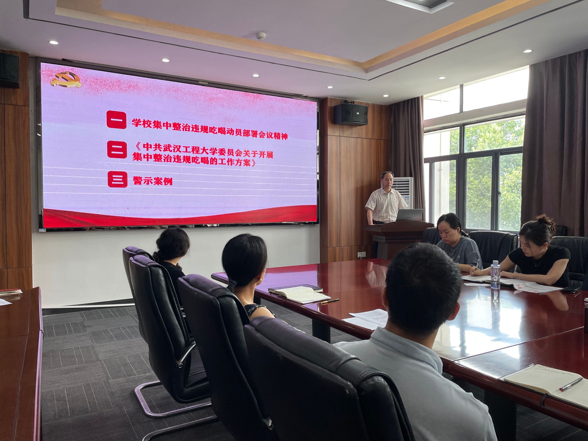集中整治违规吃喝工作进行部署安排。他强调,各教研室、办公室全面自查自纠,党员干部要对照纪律要求,认真学习领会相关纪律法规和本次集中整治的具体要求,自觉抵制违规吃喝。