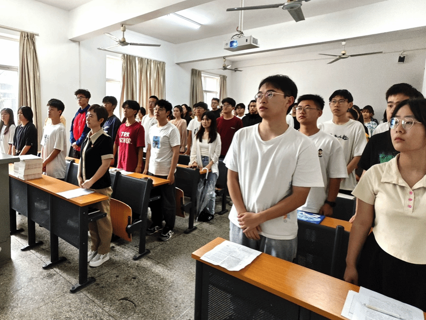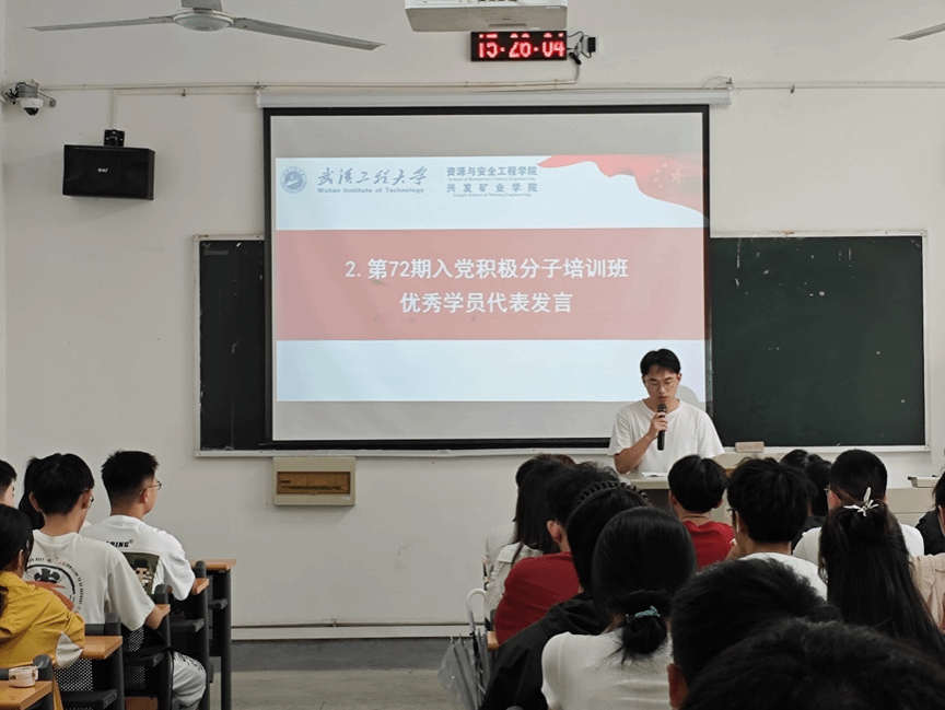 在雄伟的国际歌后,第72期入党积极分子优秀学员代表2023研究生张小圆、拟发展对象学员代表2022级本科生朱美龄依次上台发言。他们代表全体同学郑重承诺将认真严肃对待每一节党课,不断提高思想认识,补足精神之钙,在学习和生活中以一名党员的标准严格要求自己。