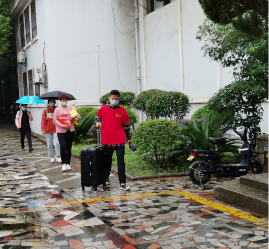 9月22日清晨,天空飘着绵绵细雨,志愿者早早行动起来,在新生迎新报到点扎起来帐篷,身穿红色小马甲,穿梭在学校大门、迎新点和新生宿舍之间,为2020级萌新们指引,消毒,帮助新生搬运行李,解答新生和家长们的问题,介绍学校的布局及基础设施等情况,帮助新同学们快速熟悉校园环境,并叮嘱新生在校期间的注意事项和防骗常识,让新同学没有初到陌生环境的茫然无助,无微不至的关心和服务让新生感到温暖,让家长感到安心。