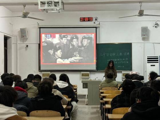 活动尾声,全体同学共同观看雷锋主题纪录片《新影像》。影片通过珍贵的历史影像与当代青年的访谈对话,还原了雷锋从普通士兵到时代楷模的成长轨迹,更以鲜活视角诠释了雷锋精神在新时代的传承与创新。当荧幕上再现雷锋冒雨护送老人、默默捐款支援灾区等经典画面时,现场同学无不动容。“原来伟大始于平凡,雷锋同志用短暂的一生诠释了什么是永恒的价值。”一名同学在观影后感慨道。纪录片以“青年如何续写新时代雷锋日记”的提问收尾,引发全场深思,也为这场团课画上了一个充满力量的句号。