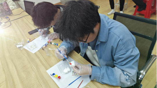 本次活动旨在通过创意艺术活动,营造温馨节日氛围,倡导新时代女性自信、自强的精神风貌。通过轻松的艺术体验与互动环节,帮助同学们释放压力,提升心理健康水平,同时启发关注自我成长与女性群体的发展,传递尊重女性、赞美女性价值的社会理念。随着活动的开始,各位同学手持画笔开始了自己手工创作。
