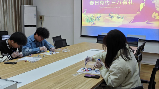 于3月8日,在领创大楼201会议室举办了“春日有约 三八有礼”主题减压活动,团委暨学生会办公室工作人员、各年级学生参与了本次活动。