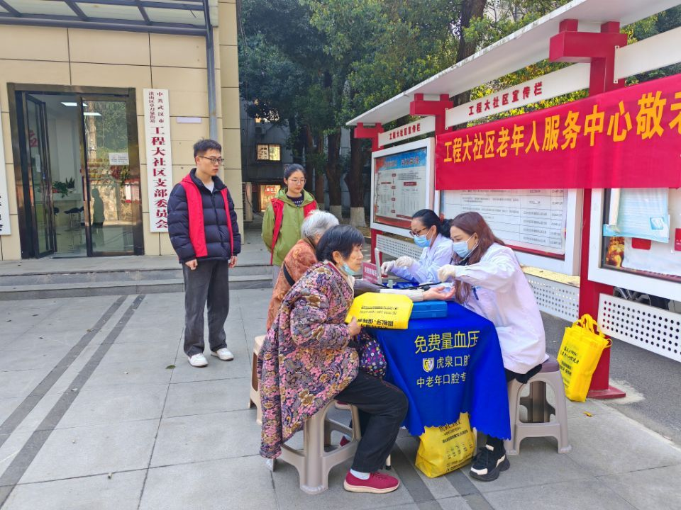 志愿者走进周边社区,开展免费测血压、陪同就医等助老服务。针对独居或行动不便的老人,志愿者们全程陪护,缓解其就医焦虑,同时通过聊天陪伴传递关怀。活动累计服务社区老人50余人次。