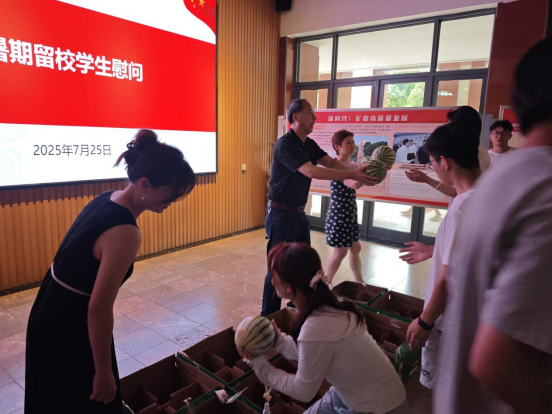 党委书记江本武、党委副书记李佳、副院长周芳带领学工团队,看望慰问暑期留校备战考研、科研竞赛的本科生与研究生,并为他们送上西瓜等防暑物资,传递学校成人抖音