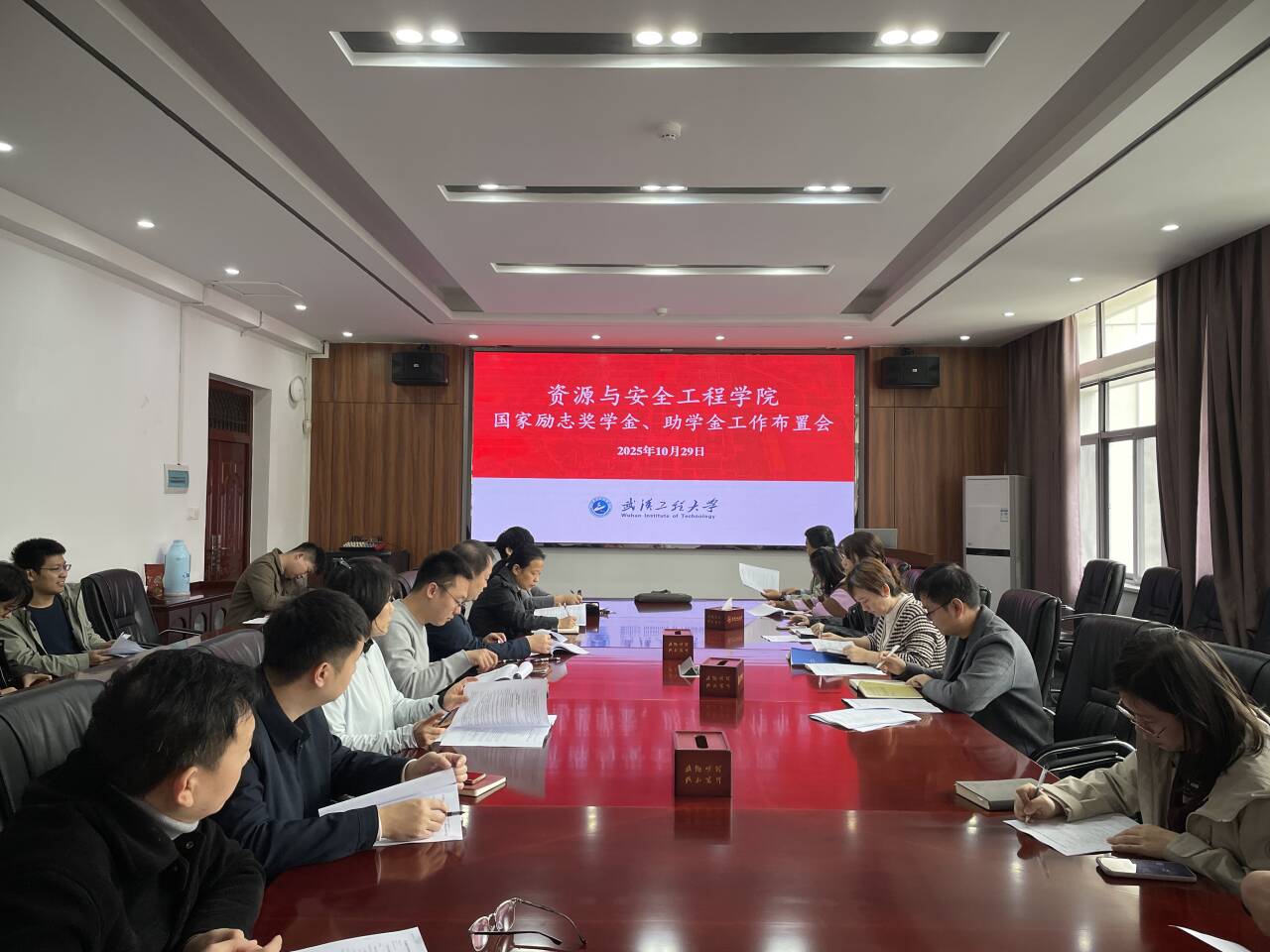 资助专项辅导员王祥祥对2025年度国家励志奖学金、国家助学金和评优评先工作的评审政策、申请条件、名额分配、材料填写规范、时间节点和常见问题等进行了详细解读。学生工作办公室副主任王耀眉就近期学生心理健康教育等工作做了布置。