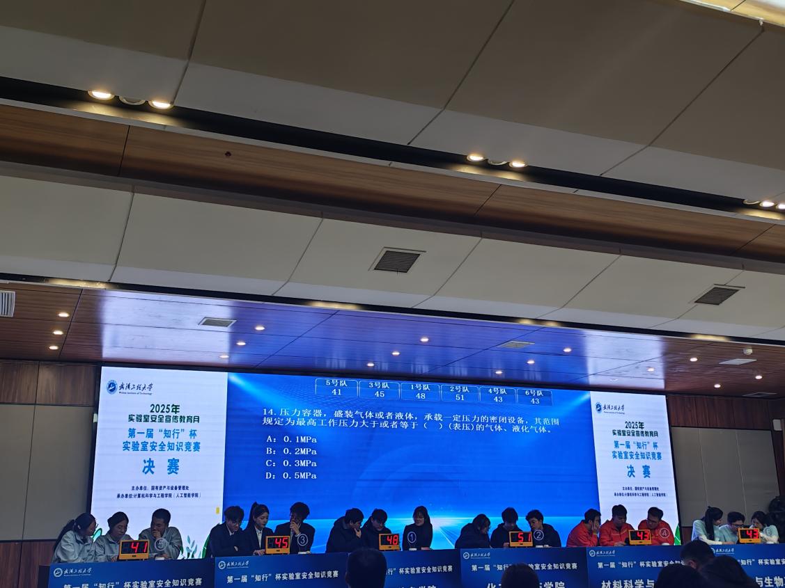 代表队5名选手沉着应战,凭借对实验室安全法规、化学品管理、仪器操作规范等基础知识点的熟练掌握,在必答题、判断题环节稳扎稳打,最终获得校赛第四名。