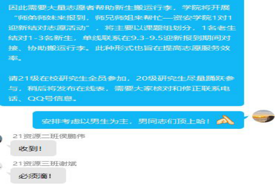 9月2日,成人抖音 发布了“老生结对志愿者”活动,在校学生党员、青年志愿者和学子们积极响应,踊跃报名,不到2个小时,成人抖音 261名新生被志愿者们“抢购”一空。结对以课题组、班级为单位,新老生通过双向互选,最终实现新生100%精准结对服务。