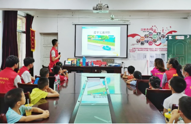 志愿者们利用多媒体方式进行安全知识宣讲,组织观看防灾演练视频,并以场景模拟的方式让小朋友们对暑期安全知识的进一步了解。