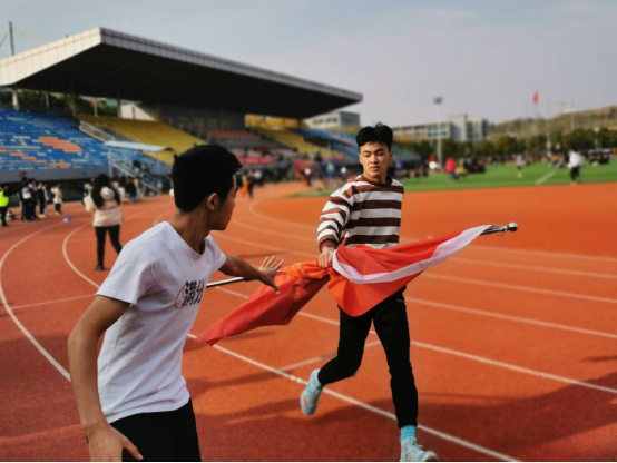 比赛中,运动员们在操场上奋力奔跑,每一个人都拼尽自己的全力,将院旗一棒一棒的接下去。在阳光的照耀下,大家奔跑的背影,洒下的汗水,喝彩的模样,还有飘扬的旗帜,都构成了比赛场上最美的风景。