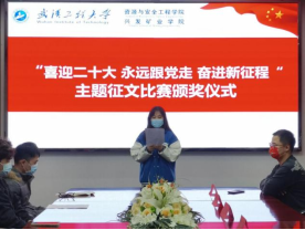 随后,优秀征文获得者分享了自己的作品,一等奖获得者2021级研究生资源1班的张满分享了作品《国说》,二等奖获得者本科生2021级资源循环科学与工程01班的曾书航分享了作品《风雨峥嵘路,青年者与共》,本科生2020级资源循环科学与工程01班的严丹阳分享了作品《致董必武先生的一封信》,现场掌声不断。