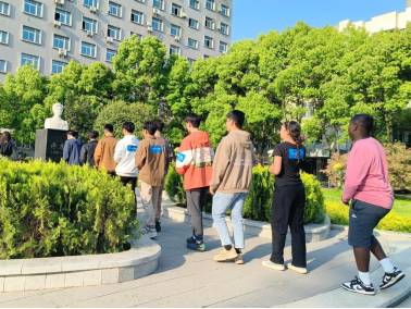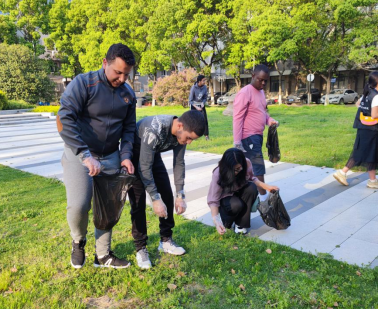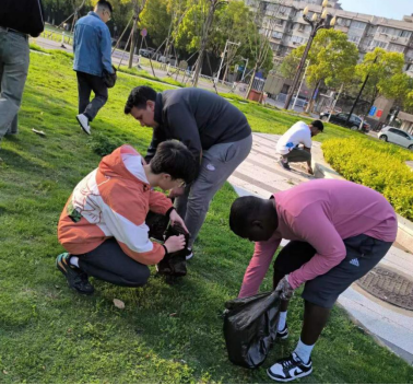 师生与留学生们一同打扫许志伟广场,以实际行动传承许志伟精神。(审核 李佳)
