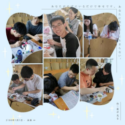 活动结束后,大家纷纷与自己绘画的脸谱合影留念。