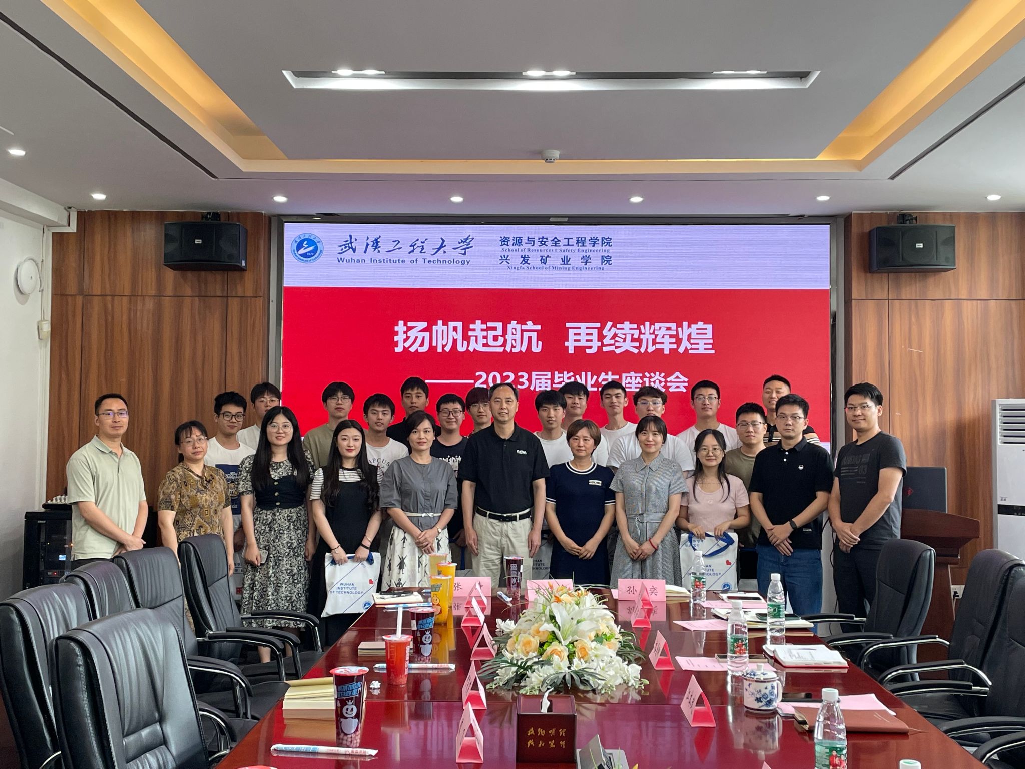 党委书记江本武、副院长周芳、吝曼卿、导师代表与2023届的毕业生代表们围坐一起,交流收获,畅谈未来。会议由成人抖音
