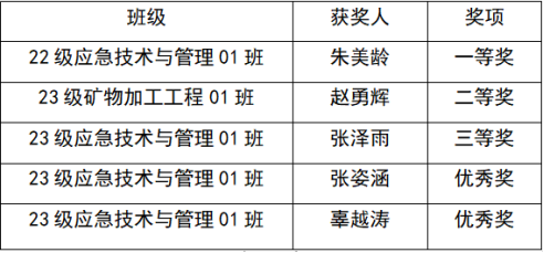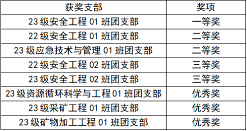 经过激烈的角逐,22级应急技术与管理1班朱美龄、23级矿物加工工程1班赵勇辉在“优秀主讲人”比赛中分别荣获一、二等奖。在“活力团支部”比赛中,23级安全工程1班团支部获得一等奖,22级安全工程1班团支部与23级应急技术与管理1班团支部获得二等奖。