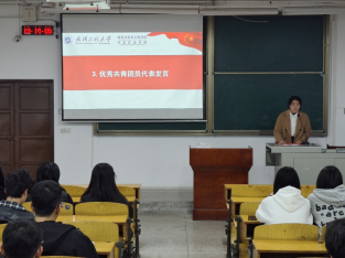 第六期“青马工程”培训班优秀团员代表王艺樨分享了自己对于新时代青年团员的时代责任和历史使命的认知,号召全体学员在培训过程中努力学习马克思主义基本理论,在思想和行动上积极向优秀党员和团员学习,用马克思主义思想武装自己的头脑。为全面建成社会主义现代化强国而努力奋斗。