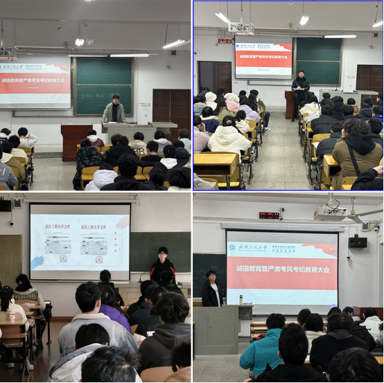 本科班级和研究生班级开展了“诚信考试 从我做起”主题教育班会,集中学习了考试作弊处分案例和《国家教育考试违规处理办法》《成人抖音