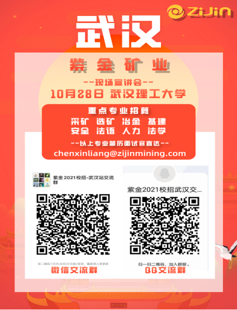 注:关注紫金矿业集团官方招聘微信公众号(微信号:紫金矿业招聘配置中心)及学校就业官网,可获得最新宣讲行程及相关信息。