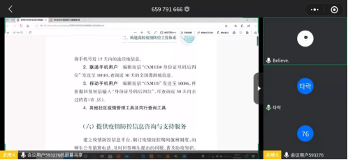 在班会上,各年级同学认真学习了《高等学校新型冠状病毒肺炎防控指南》和《新型冠状病毒肺炎健康教育手册》,通过深入学习,同学们对新型冠状病毒有了充分的了解,对它的传播途径和传播方式有了充分的掌握。此后,同学们还认真了解了如何区别流感和新型冠状病毒。对采取隔离的原因以及措施、外出时需要注意的事项、对于无症状感染者的关注和预防,防止同学疏忽大意,进行了科普学习。同时在班会上积极了解每位同学所在地的疫情情况,及时完成心理疏导。同时也提醒同学们积极做好复学的准备。