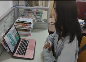 图为学生在进行线上实习