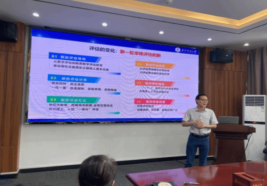 武汉纺织大学评估中心主任周平应邀作本科教育教学审核评估专题辅导报告,他结合自己对本科教育教学审核评估的认识,以“本科教育教学审核评估实践与策略”为题,从六个方面分享了评建实践经验,以具体事例全面直观地解读了线上线下评估流程及评估重点,对成人抖音